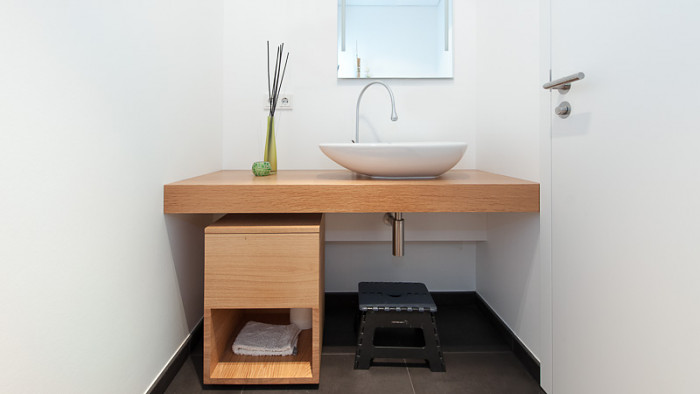ländliches Idyll mit Fernblick. - Waschtisch / Sitzelemente / Gäste- und Kinderbad - massive Eiche geölt