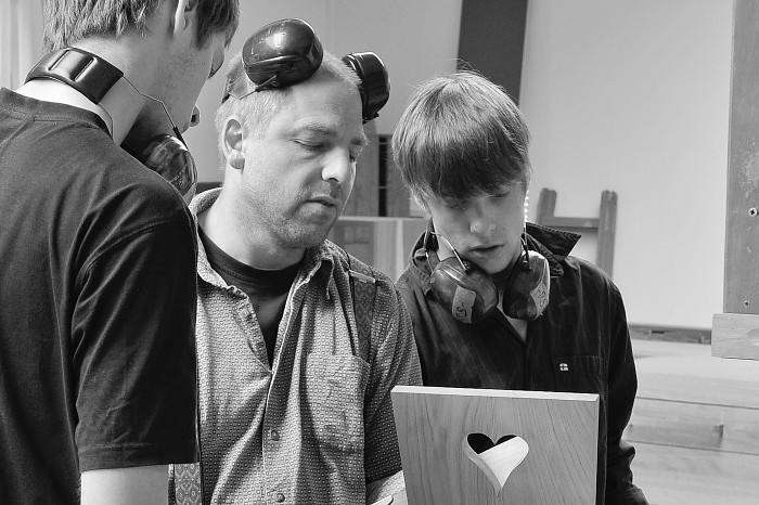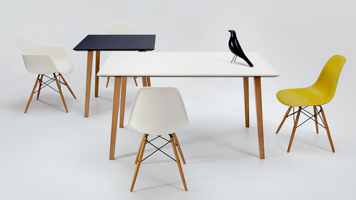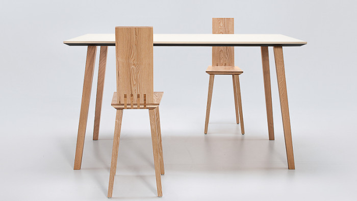 Verwendete Materialien sind feine und dennoch robuste Hölzer: schlichter Ahorn, feurige Kirsche, edler Nussbaum sowie helle Esche mit dunklem Kern, solide gefertigt in handwerklicher Präszision. Speziell entwickelte Verbindungstechniken erlauben die filigrane Materialstärke bei einem hohen Maß an Stabilität.