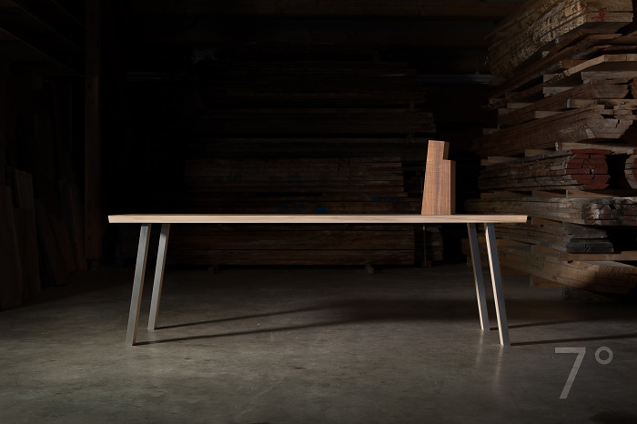Foto unten: Tisch modell 7° aus Graurüster als Schreibtisch mit Schubauszügen